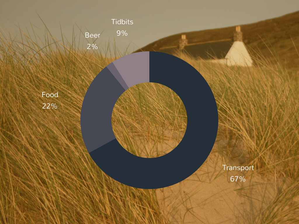 The overwhelming portion of our budget was spent on transport in Scotland. We decided that we wanted to hike in a very rural, northerly section. This meant that it took hours to reach by train/bus/ferry.